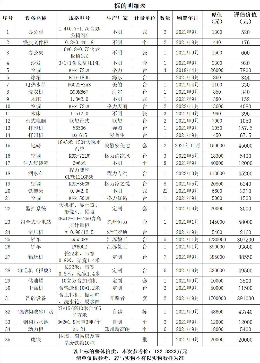 標(biāo)的詳情見下方所附清單(清單僅供參考,若與實物不符以實物看樣為準(zhǔn))。