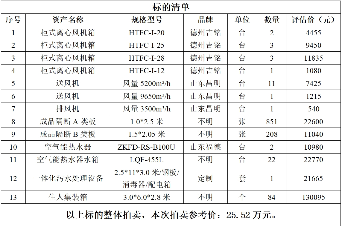 一、拍賣標的:六安市中醫(yī)院閑置資產一批,包括:一體化污水處理設備、柜式離心風機箱、空氣能熱水器、送風機等,參考價:25.52萬元,競買保證金:2萬元。