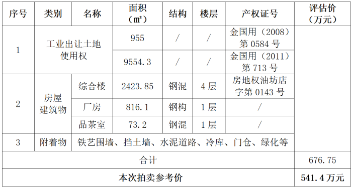 以上標(biāo)的整體拍賣,參考價(jià):541.4萬(wàn)元,競(jìng)買保證金:50萬(wàn)元。
