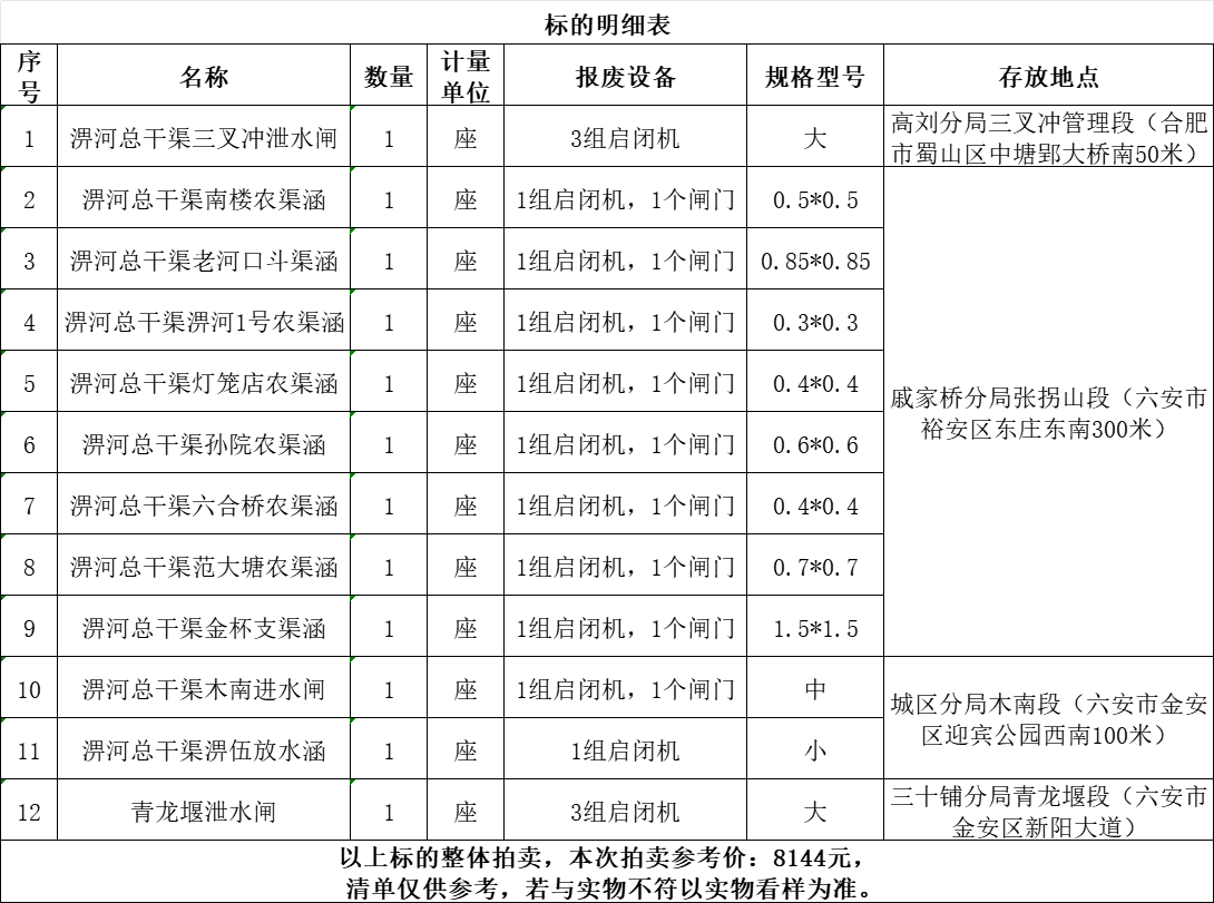 一、拍賣(mài)標(biāo)的:報(bào)廢水利基礎(chǔ)設(shè)施設(shè)備一批,參考價(jià):8144元。