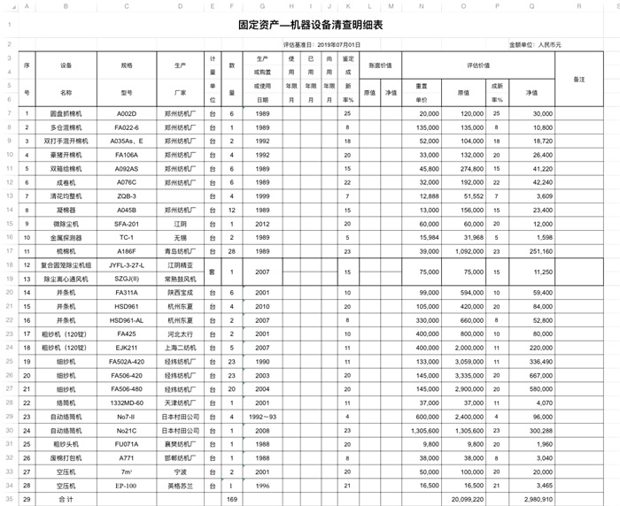 一、拍賣標的:自動絡筒機、細紗機、粗紗機、梳棉機、并條機、成卷機、雙箱給棉機、圓盤抓棉機、豪豬開棉機、空壓機等二手紡織設備及輔機、容器一批。