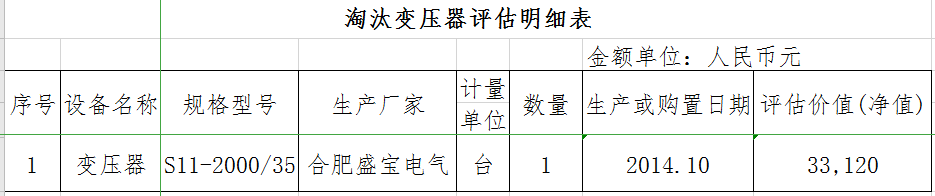 3、S11-2000/35變壓器1臺(tái),參考價(jià):3.312萬(wàn)元。