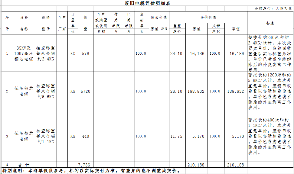 廢舊電纜、淘汰變壓器等拍賣(mài)公告