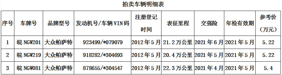1、皖NGW201帕薩特牌轎車,2012年5月登記注冊(cè),參考價(jià)5.22萬元;