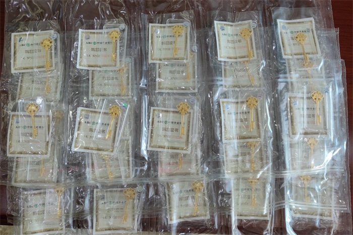 2、中國農(nóng)業(yè)銀行金鑰匙30枚,質(zhì)量5克/枚。優(yōu)先整體拍賣,整體無人競買,在分拆為每枚為一個(gè)標(biāo)的。參考價(jià):1836元/枚。競買保證金整體為1萬元,每枚保證金1000元。