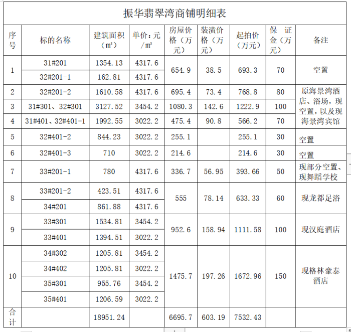 一、拍賣標的:六安市振華翡翠灣沿磨子潭路商業(yè)用房,詳見下方清單: