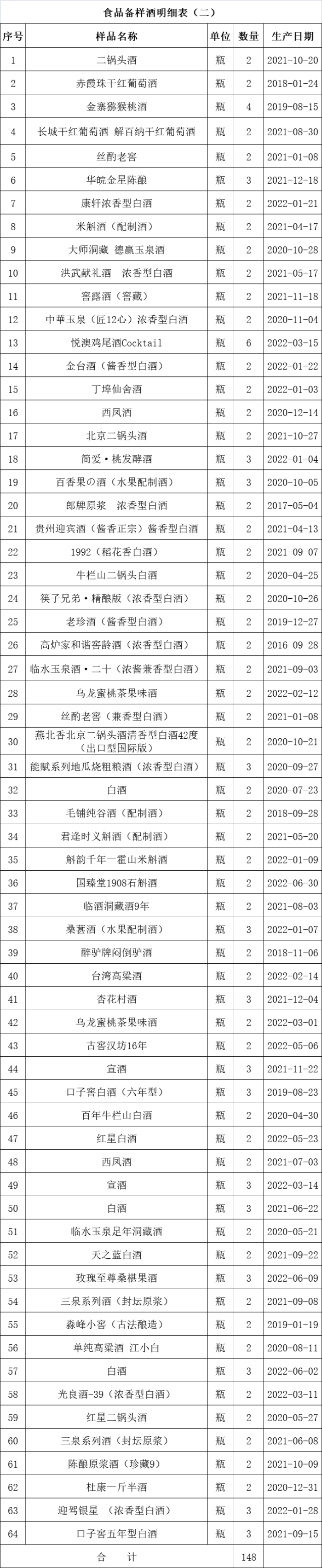 瀘州老窖特曲老酒、瀘州老窖特曲酒.紀念版、瀘州原漿酒手工珍藏、金臺酒、赤霞珠干紅葡萄酒等食品備樣酒共計308(瓶、支、盒)。整體打包拍賣,參考價:3280元。競買保證金:5000元。標的明細見下方清單: