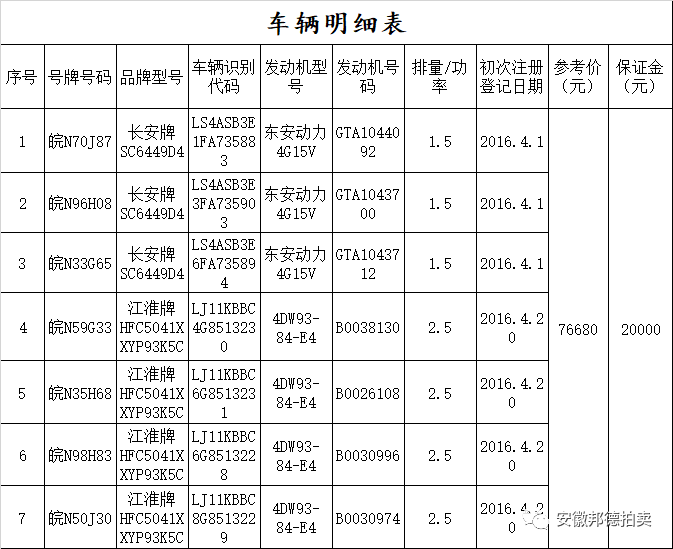 注:車輛按現(xiàn)狀移交,拍賣的所有車輛均不含車牌號(hào)。