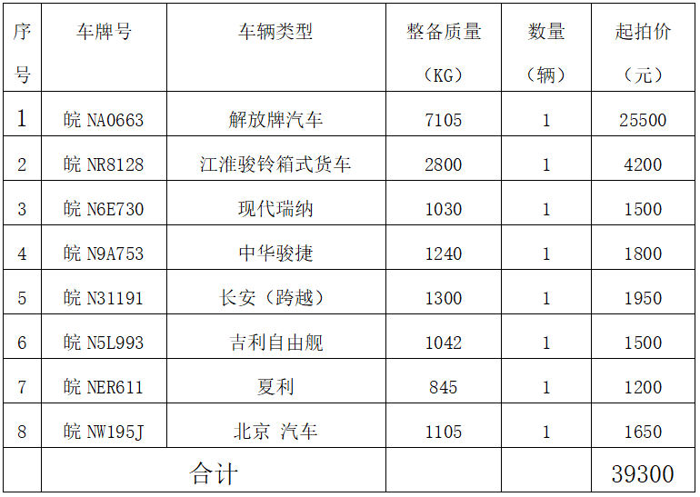 一、拍賣標(biāo)的:報(bào)廢車輛8輛,打包拍賣,參考價(jià):3.93萬元。競(jìng)拍保證金1萬元。標(biāo)的詳情見下方清單: