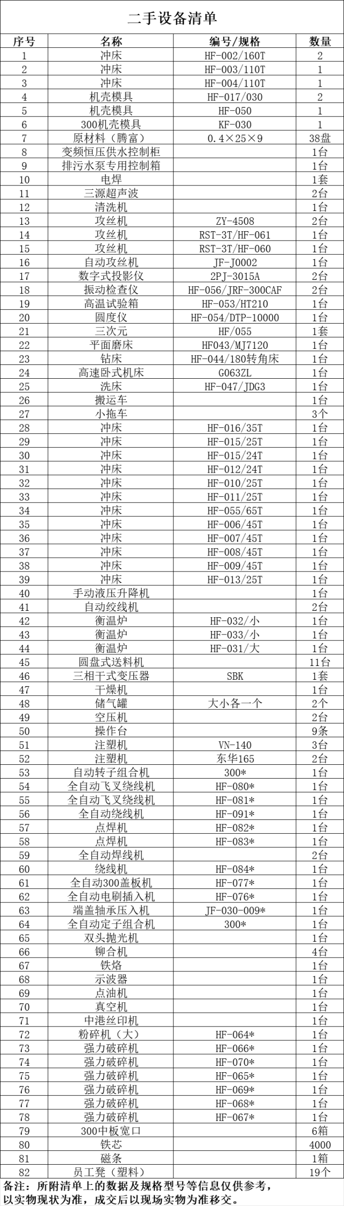 一、拍賣標的:沖床、變壓器、強力破碎機等二手設備一批,參考價:99萬元。保證金:10萬元。