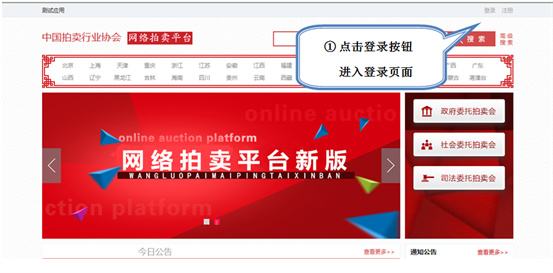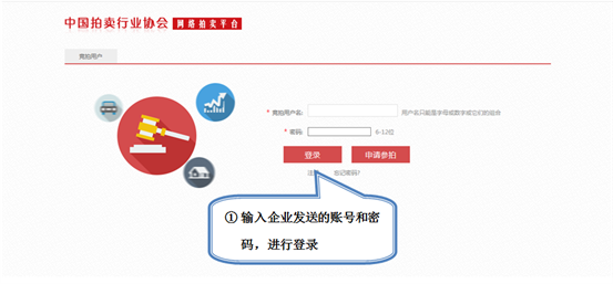 PS:此處登錄為網(wǎng)絡(luò)拍賣平臺(tái)的登錄,且登錄后才能進(jìn)行拍賣會(huì)的參拍申請(qǐng)。如果需要登錄拍賣會(huì),請(qǐng)使用企業(yè)分配的賬號(hào)進(jìn)行登錄。