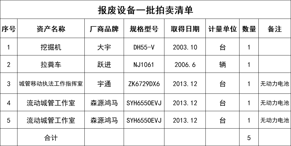 一、拍賣標的:報廢設備一批,整體打包拍賣,參考價:21377元,保證金:1萬元。