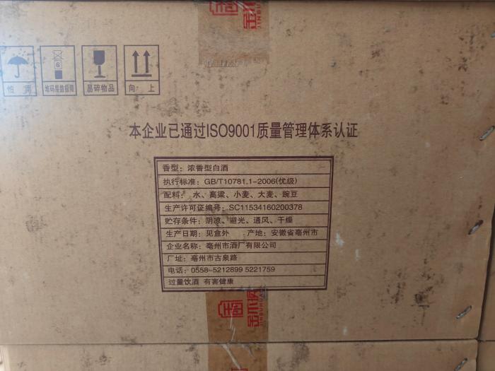 一、拍賣標的:亳州市酒廠金不換52度古池原漿白酒1796瓶,生產(chǎn)日期:2017年4月,規(guī)格:1000ml×6瓶/箱,共計299箱+2瓶,單價約29 元/瓶。整體拍賣,參考價:52655.36元。現(xiàn)狀拍賣,現(xiàn)狀移交。競買保證金:2萬元。